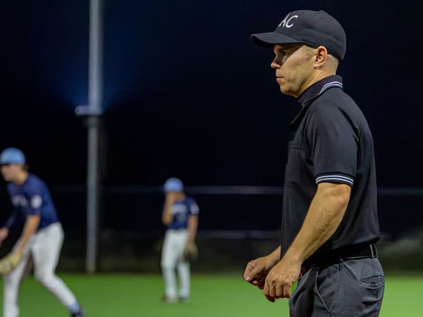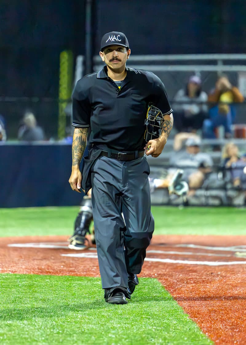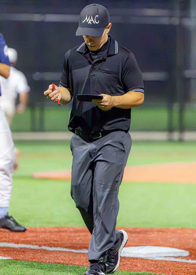 The umpire’s evaluation process begins on the field. Here is Brother Mack, out of Arlington by way of Long Island, NY, between innings with his notebook and red pen out making notes to review in post-game and to populate his Arbiter report with.